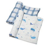 Blue Check + Whales swaddles